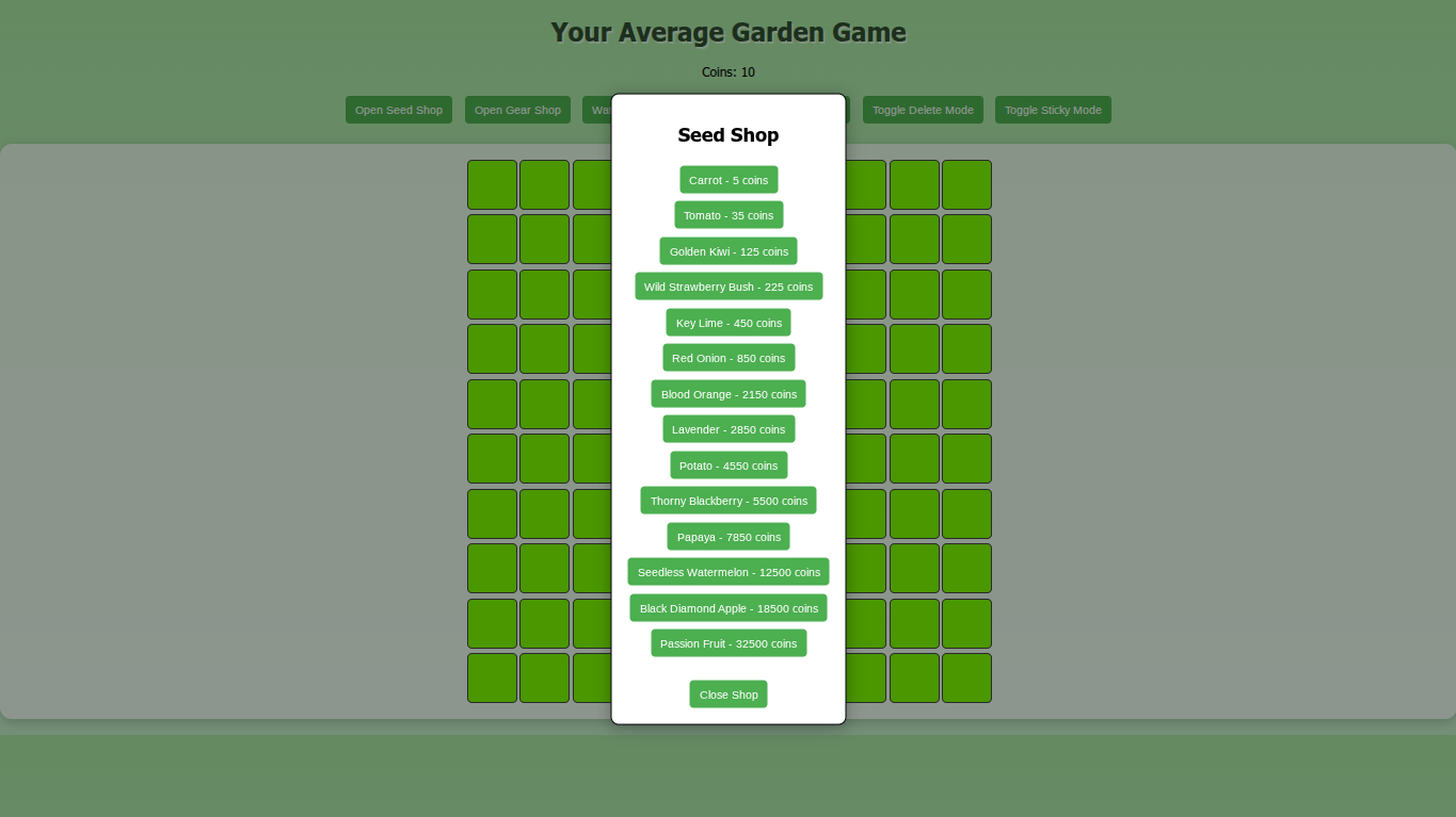 Your Average Garden Game - V1.0: The original version of Your Average Garden Game (14 August 2025)